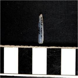 | Description / विवरण | A chalcedony blade with single ridge on dorsal side, triangular cross section, sharp cutting edges and pointed at one end. |
