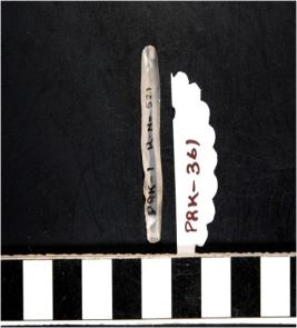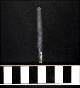 | Description / विवरण | A chalcedony blade with double ridge on dorsal side and bulb on ventral side, trapezoid cross section and sharp cutting edges. |