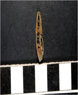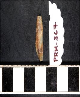 | Description / विवरण | A chert blade with single ridge on the dorsal side and bulb on ventral side, triangular cross section and sharp cutting edges. |
