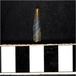 | Description / विवरण | A Chalcedony blade with double ridge on dorsal side, trapezoid cross section and sharp cutting edges. |