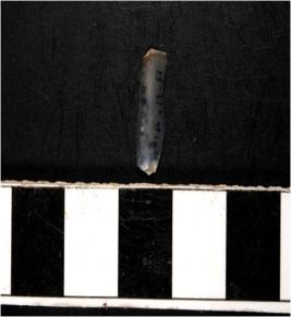 | Description / विवरण | A Chalcedony blade with single ridge on dorsal side, triangular cross section and sharp cutting edges. |