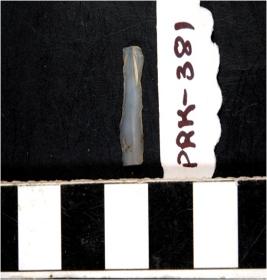 | Description / विवरण | A chalcedony blade with single ridge on dorsal side and bulb on ventral side triangular cross section and sharp cutting edges. |