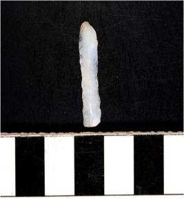 | Description / विवरण | A chert blade with single ridge on the dorsal side and bulb on ventral side, triangular cross section and sharp cutting edges. |