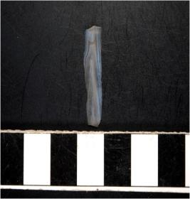 | Description / विवरण | A stone blade with single ridge on dorsal side triangular cross section and sharp cutting edges. |