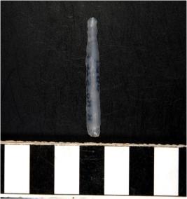 | Description / विवरण | A chalcedony blade with single ridge on dorsal side, triangular cross section and sharp cutting edges. |