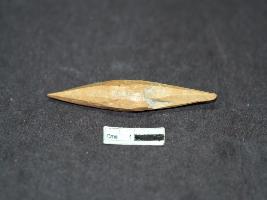 | Description / विवरण | Bone arrow head with pointed tang, rough finish. |