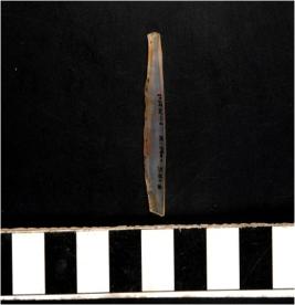 | Description / विवरण | A lunate having steep blunted arc with retouching on left side also forming ridge on dorsal side with proximal scraping on the upperend. |