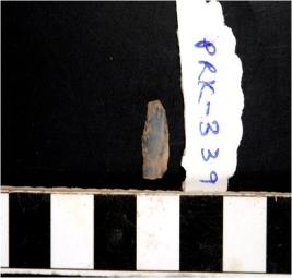 | Description / विवरण | An unfinished blade with flaking upper side forming single ridge having retouching on the side. |