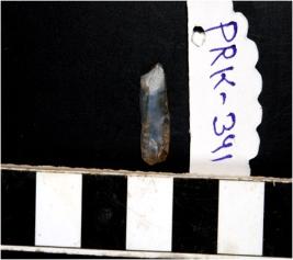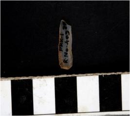| Description / विवरण | A blade having flaking on the upper side and oblique retouching on the left edge. |