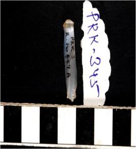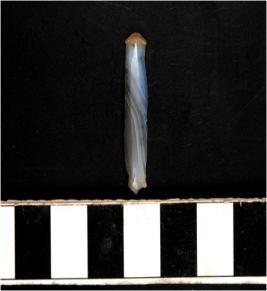| Description / विवरण | A crecentric blade having flaking on the upper ridge with not much retouching on the either side having blunt edges on both end. |