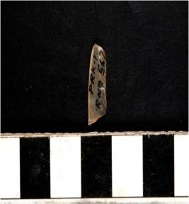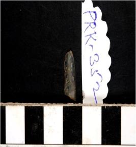 | Description / विवरण | A blade with sharp flaking on the upper surface and blunt edges on the sides. |