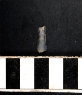 | Description / विवरण | A blade having flaking on upper end and right edge is broken. |
