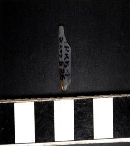 | Description / विवरण | A chalcedony blade with double ridge on dorsal side, trapezoid cross section and sharp cutting edges. |