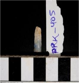 | Description / विवरण | A chalcedony blade with double ridge on dorsal side, trapezoid cross section and sharp cutting edges. |