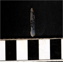 | Description / विवरण | A chalcedony blade with single ridge on dorsal side, triangular cross section and sharp cutting edges. |