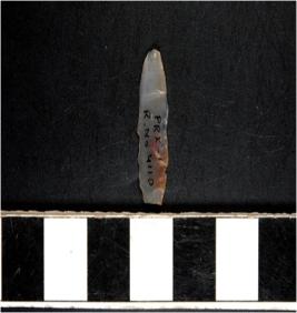 | Description / विवरण | An unfinished chalcedony blade with single ridge on dorsal side, triangular cross section and sharp cutting edges. |