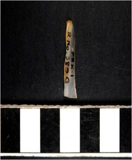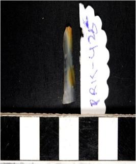 | Description / विवरण | A chalcedony blade with double ridge on dorsal side, trapezoid cross section and sharp cutting edges. |