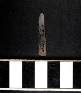 | Description / विवरण | A chalcedony blade with single ridge on dorsal side, triangular cross section and sharp cutting edges. |