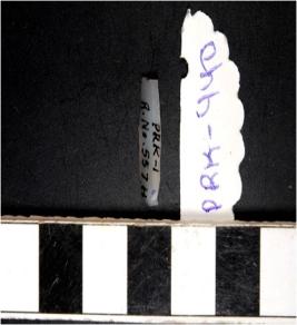 | Description / विवरण | A chalcedony blade with single ridge on dorsal side, triangular cross section and sharp cutting edges. |