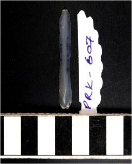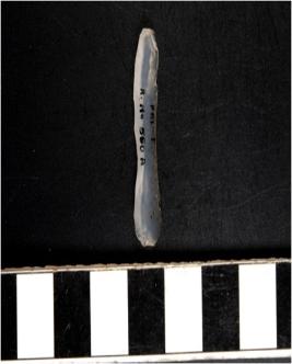 | Description / विवरण | A chalcedony blade with single ridge on dorsal side, triangular cross section, bulb on ventral side and sharp cutting edges. |