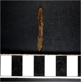 | Description / विवरण | A chalcedony blade with single ridge on dorsal side, triangular cross section, bulb on ventral side and sharp cutting edges. |