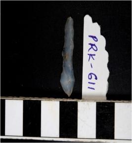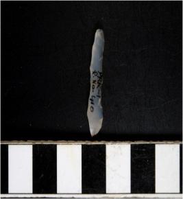 | Description / विवरण | A chalcedony blade with single ridge on dorsal side, triangular cross section, bulb on ventral side and irregular cutting edges. |