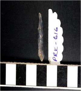 | Description / विवरण | A chalcedony blade with single ridge on dorsal side, triangular cross section, bulb on ventral side and sharp cutting edges. |