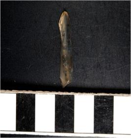 | Description / विवरण | A chalcedony blade with single ridge on dorsal side, triangular cross section, bulb on ventral side and sharp cutting edges. |