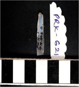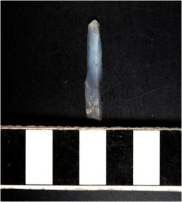 | Description / विवरण | A chalcedony blade with double ridge on dorsal side, trapezoid cross section and sharp cutting edges. |