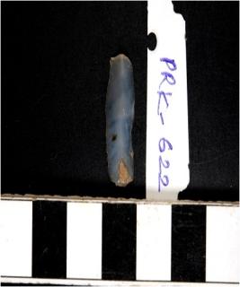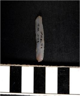 | Description / विवरण | A chalcedony blade with single ridge on the dorsal side, triangular cross section, bulb on ventral side and sharp cutting edges. |