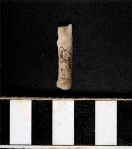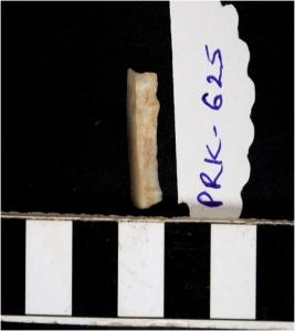 | Description / विवरण | A chert blade with single ridge on dorsal side, triangular cross section and sharp cutting edges. |