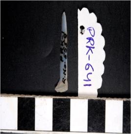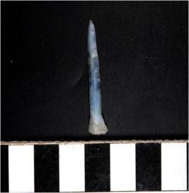 | Description / विवरण | A chalcedony blade with single ridge on dorsal side, triangular cross section, sharp cutting edges and pointed at one end. |