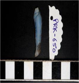 | Description / विवरण | A chalcedony blade with single ridge on dorsal side, triangular cross section and sharp cutting edges. |