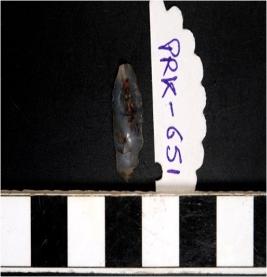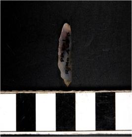 | Description / विवरण | A chalcedony blade with single ridge on dorsal side, triangular cross section sharp cutting edge and pointed at one end. |