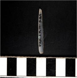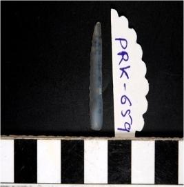 | Description / विवरण | A chalcedony blade with single ridge on dorsal side, triangular cross section, sharp cutting edges and pointed at one end. |