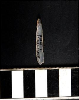 | Description / विवरण | A chalcedony blade with single ridge on dorsal side, triangular cross section and sharp cutting edges. |