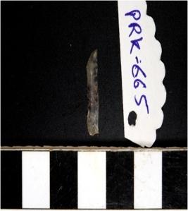 | Description / विवरण | A chalcedony blade with single ridge on dorsal side, triangular cross section and sharp cutting edges. |
