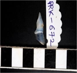 | Description / विवरण | A chalcedony blade with single ridge on dorsal side, triangular cross section and sharp cutting edges. |