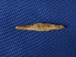 | Description / विवरण | Bone point, showing double ended point roughly made, white color. |