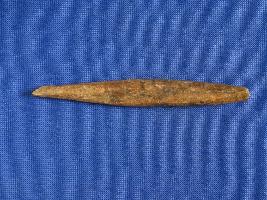 | Description / विवरण | Bone point, showing double ended point, roughly made but one point flake scars. Blackish colour. |
