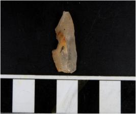 | Description / विवरण | A quartz flake with rough cutting edges. |