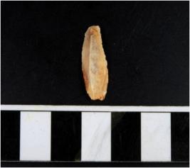 | Description / विवरण | A chert blade with single ridge on dorsal side, triangular cross-section and use-wear marks on cutting edges. |