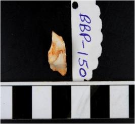 | Description / विवरण | A quartz flake with rough cutting edges. |