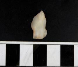 | Description / विवरण | A chalcedony flake with rough edges. |