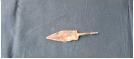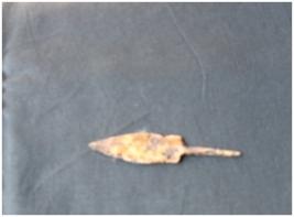 | Description / विवरण | It is a arrow Head which was found from Radhanagar site.Body portion of the object is flat. Upper portion of the arrow Head is pointedThere is a thin and long pointed stand is notice. It is in bad or fragite in. |