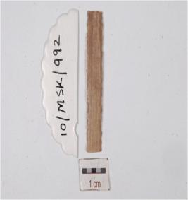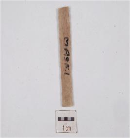| Description / विवरण | A blade made on chert two ridges on dorsal side, trapezoidal cross section, use marks along one cutting edge and both ends broken. |