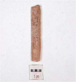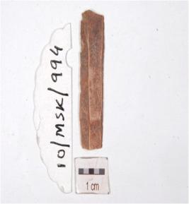 | Description / विवरण | A blade made on chert having triangular cross section, use marks along one cutting edge. |