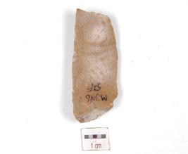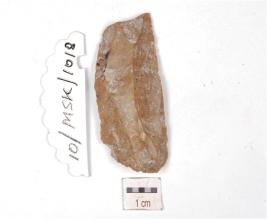 | Description / विवरण | A chert end struck flake having ripple marks on ventral side. |