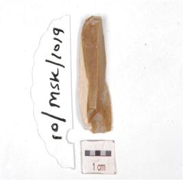 | Description / विवरण | Debitage of chert, by product of tool making having cortex partly intact. |