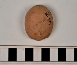 | Description / विवरण | A fragment of a terracotta ball with circular in shape and smooth surface, broken from one end. |